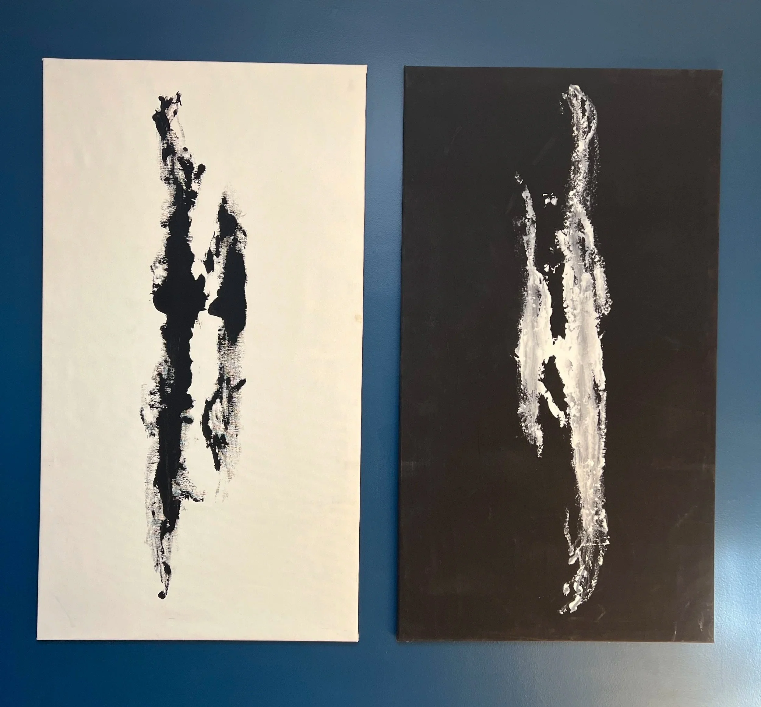 This is a popular work and has been commissioned multiple times. Currently the photo you see below on the blue wall is ON SALE - $400 for the pair.