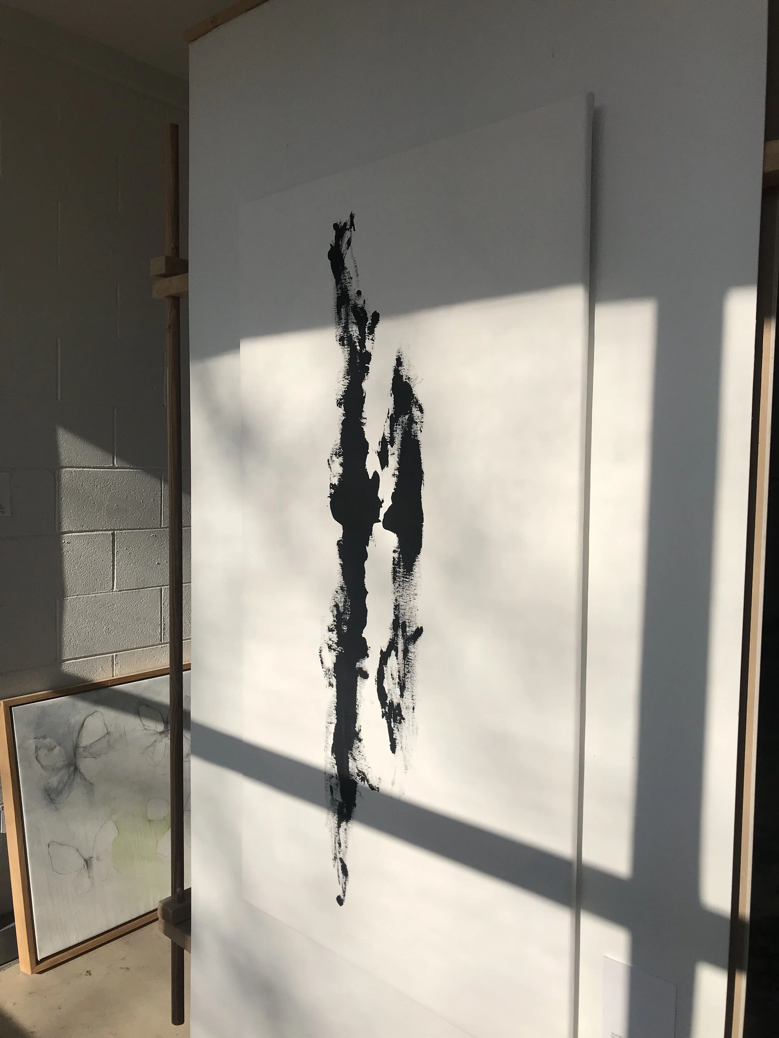 “brushed” is a work in white on black or black on white using one foot in tendus forward and back.